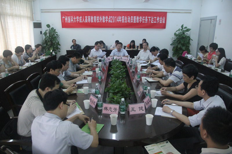 5 月 15 日 ,我院成人高等教育校外教学点2014年招生动员暨教学任务下达会议在16号楼5楼会议室举行。全科医学与继续教育学院龙大宏院长、王心旺副院长、梁相副院长以及各校外教学点负责人、成教科科长出席会议。梁相副院长主持会议。